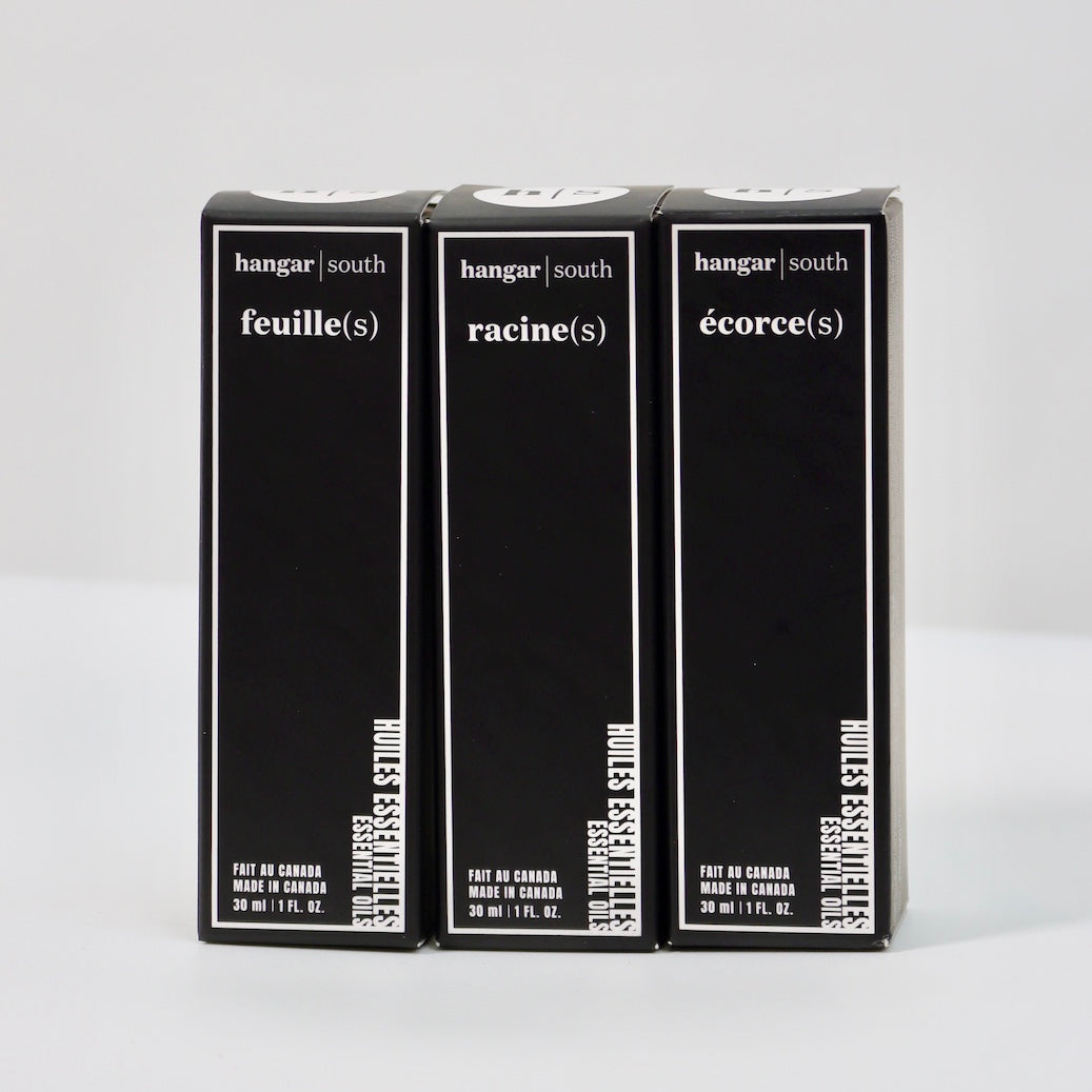 To fully experience the effect of Shinrin-yoku, Dominic Goyer offers three hyper-realistic scents of the forest: the moist plant carpet of feuille(s), the undergrowth in the mist of racine(s) and the tender green wood of écorce(s).